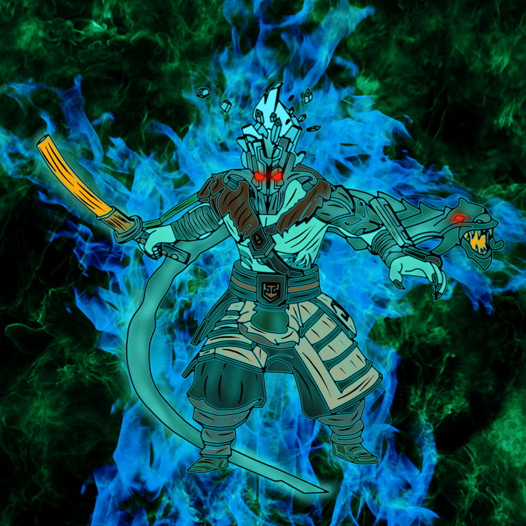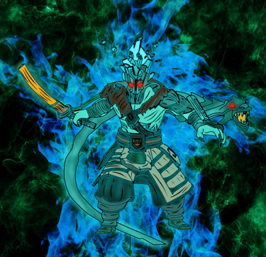 Drawing of the Bladeform Legacy arcana cosmetic of Juggernaut from DOTA 2