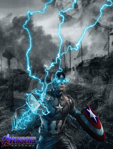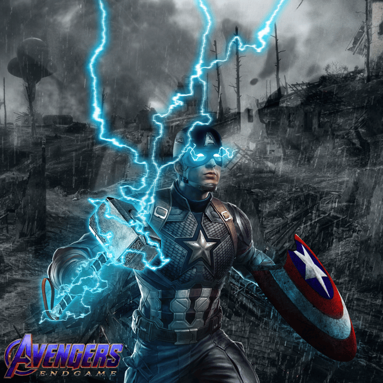 Concept art of Captain America lifting Mjollnir (made before Avengers Endgame was released)