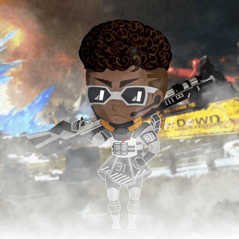 Drawing of the Officer Williams Bangalore cosmetic from Apex Legends in chibi-style