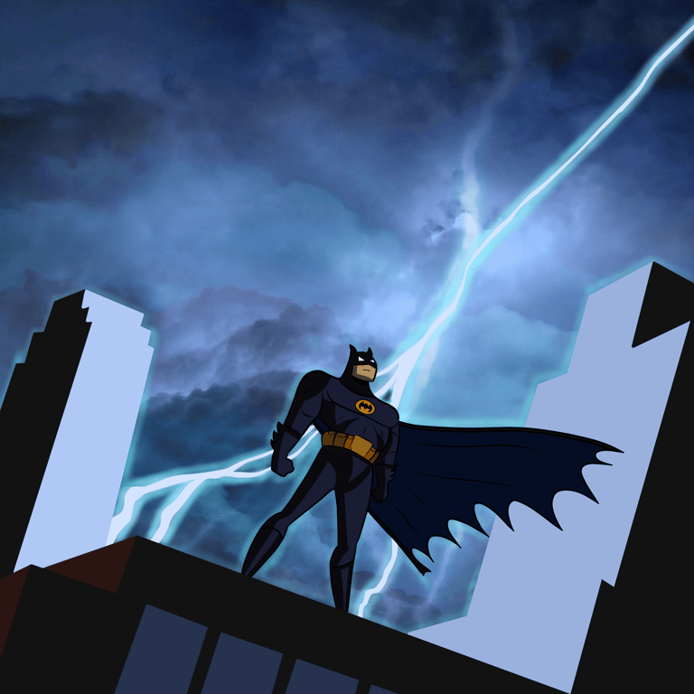 Drawing of the iconic Batman post on the rooftop from the 1992 show - Batman: The Animated Series