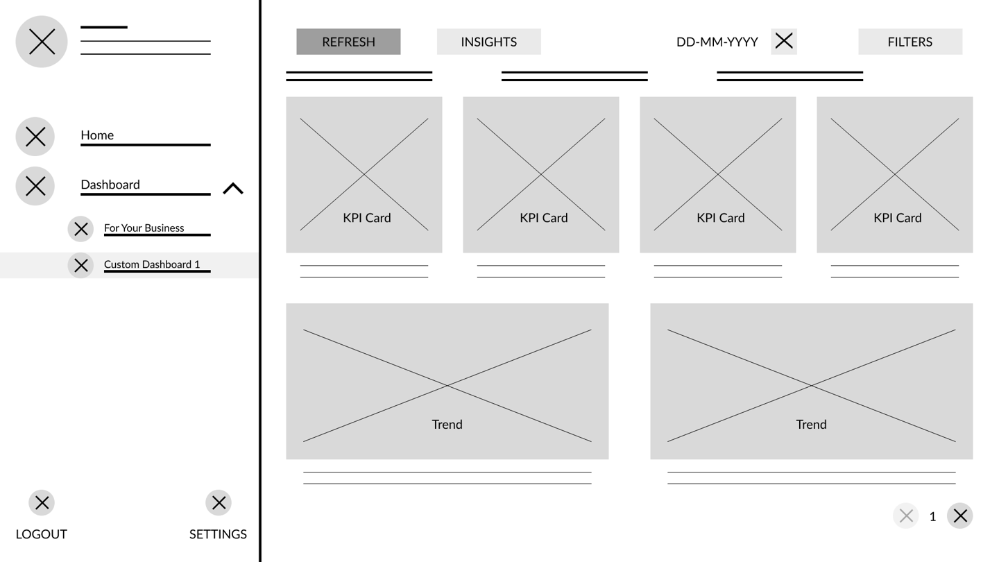The user journey was broken down into 4 core functions - onboarding, homepage with count data and graphs, personalized insights, and addition of customized dashboards.