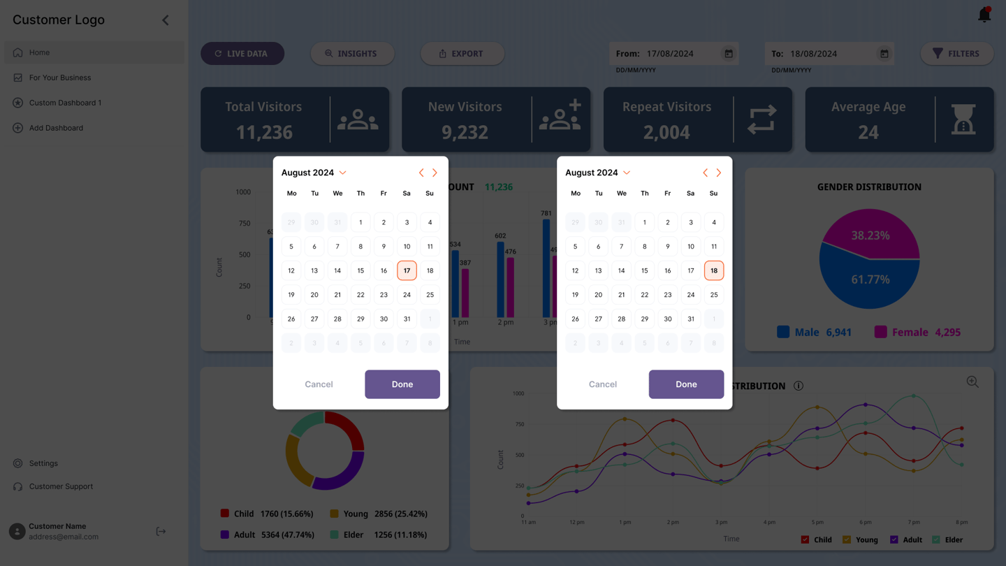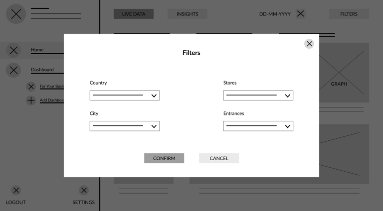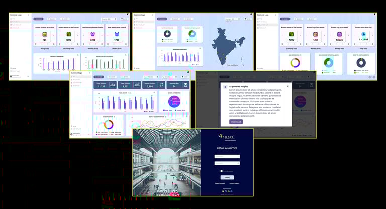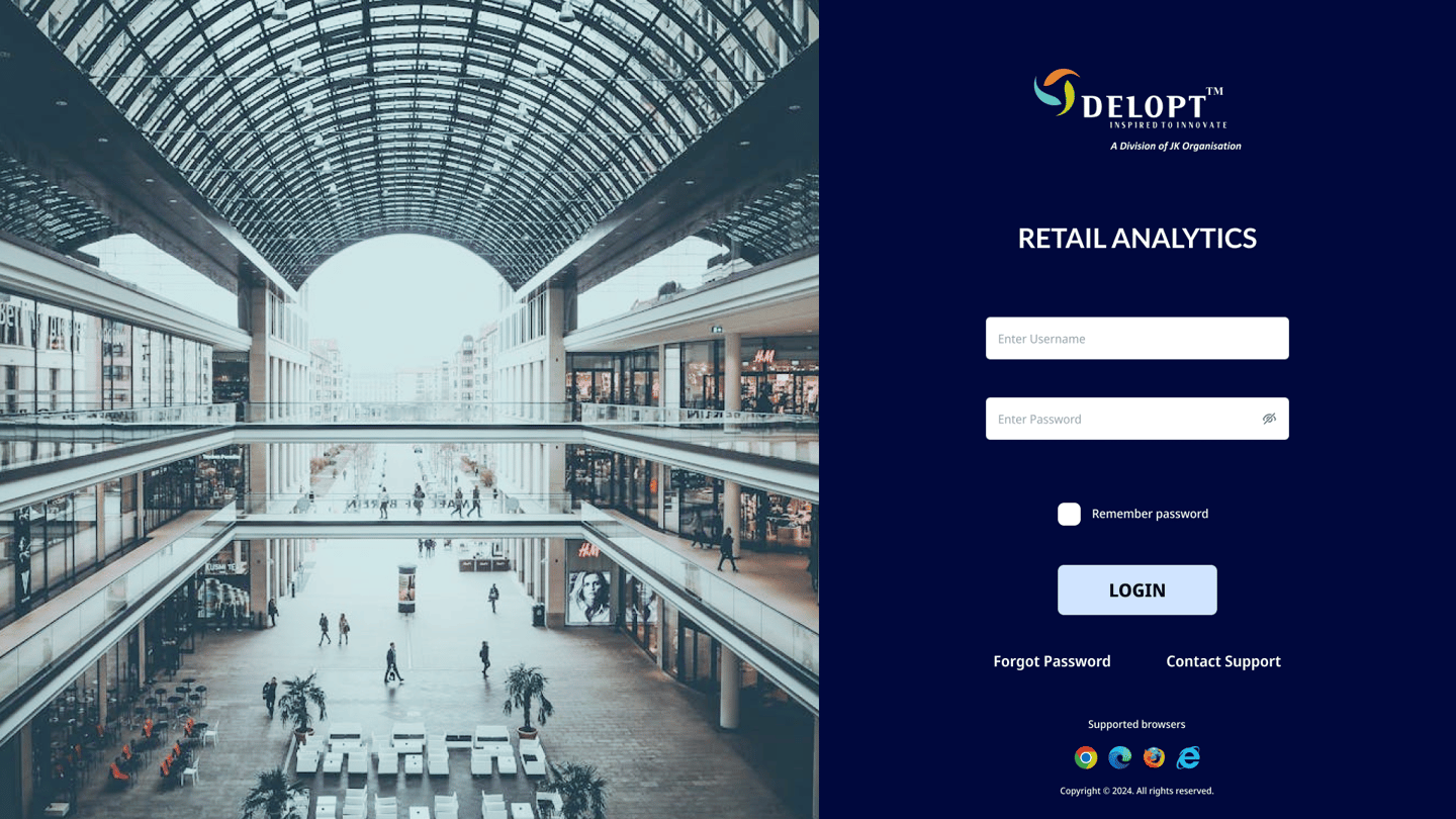 DELOPT is a retail and defense tech company owned by JK Paper, a part of the JK Group conglomeration. The retail division of DELOPT focuses on monitoring the footfall in retail stores and malls, to help management identify visitor patterns and plan their business accordingly. The current platform only displays footfall count data and graphs without insights or interpretation of the data displayed. The user is forced to interpret and analyze the data to derive business insights. The readability of the platform is also poor due to a lack of uniformity in the color palette and typography. There is also little to no customization options for dashboards.