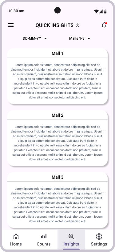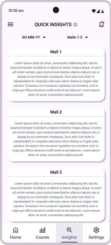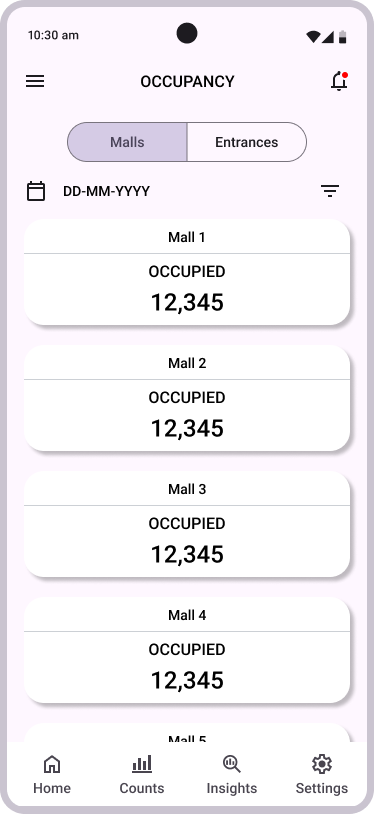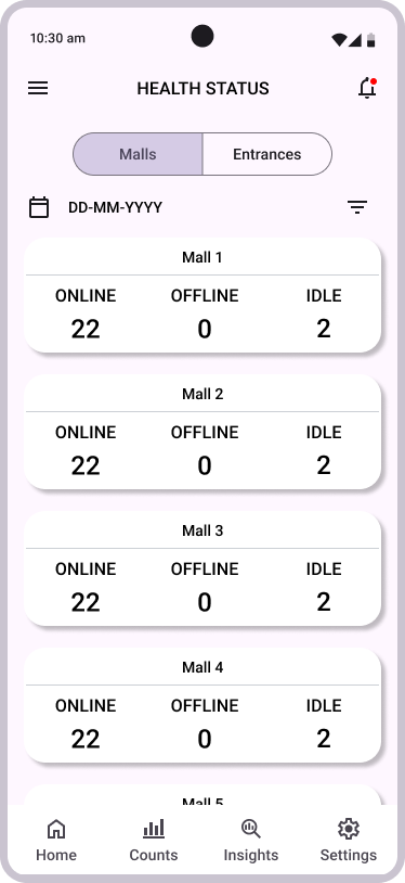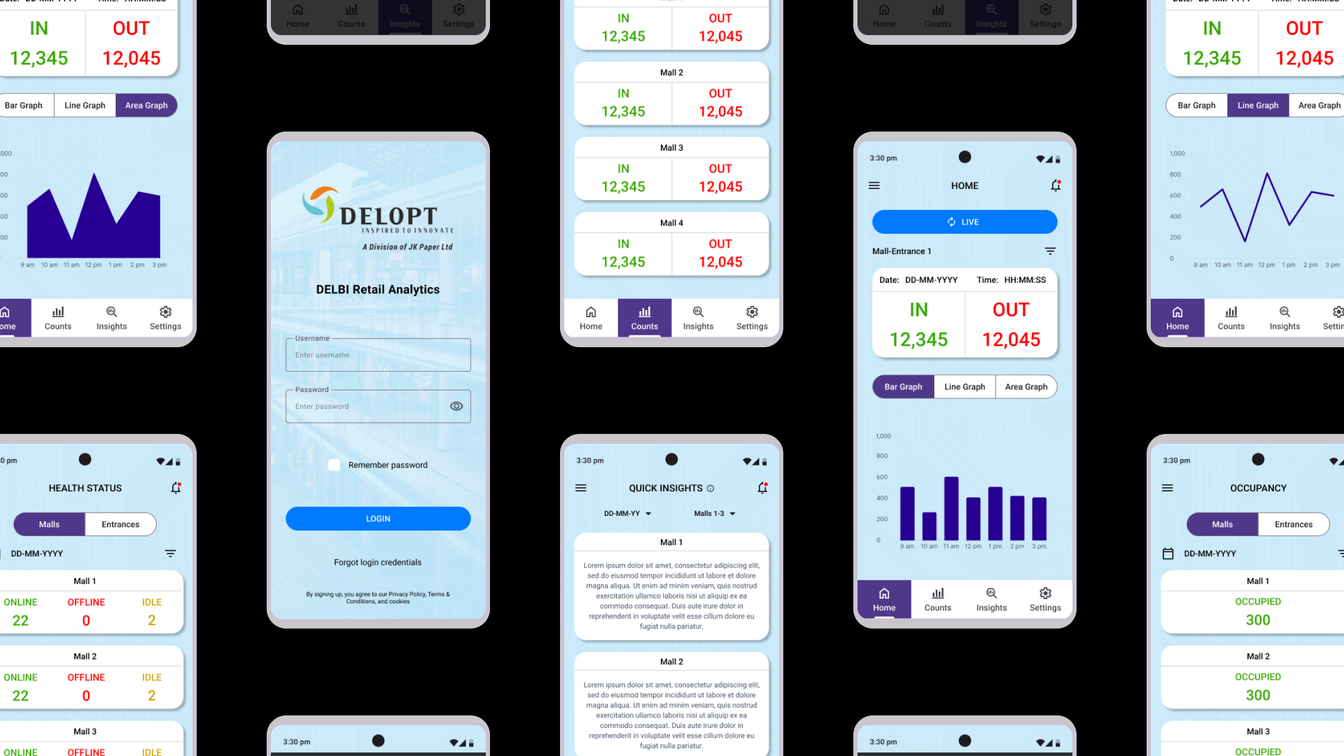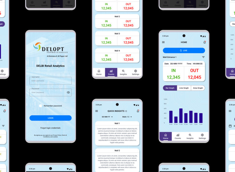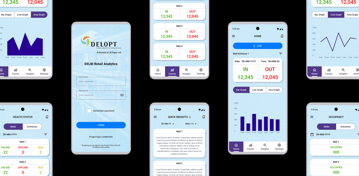 DELOPT is a retail and defense tech company owned by JK Paper, a part of the JK Group conglomeration. The retail division of DELOPT focuses on monitoring the footfall in retail stores and malls, to help management identify visitor patterns and plan their business accordingly. The current platform only has a desktop browser variant and retail management requires a more accessible way to engage with the platform. The users also require a quick and concise summary of the insights and analytics that can be accessed with a few clicks.