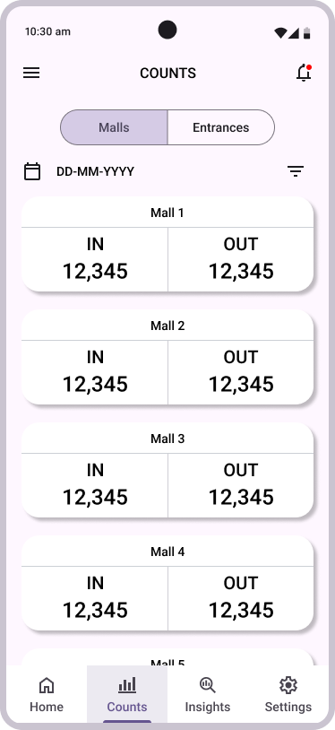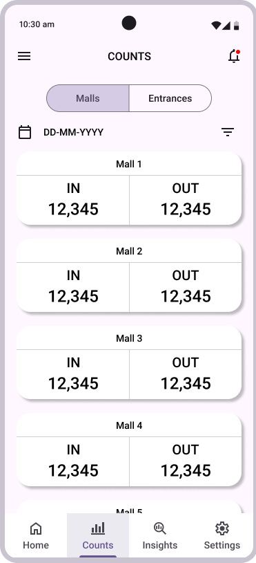 A mobile app for DELOPT's Retail Footfall Analytics customers to access insights and footfall data on-the-go. The app is intended to be a minituarized version of DELOPT's Retail Analytics platform.